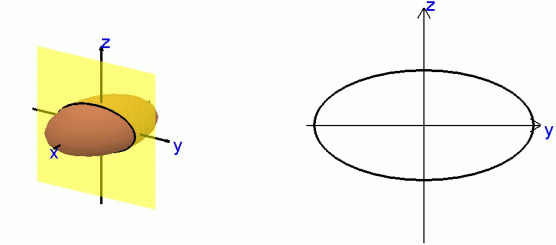 What follows are the same type of plane cuts, but for the ellipsoid.