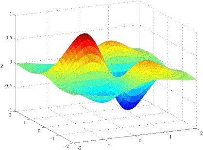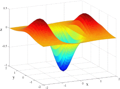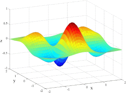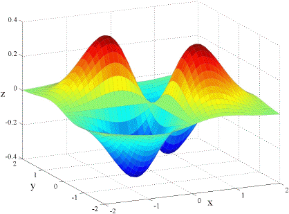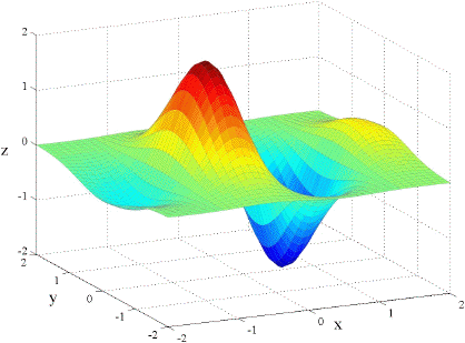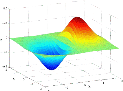 It should come as no surprise that if the partial derivatives are all continuous then fxy = fyx. Below are the graphs of fxx, fyy, and fxy for the function f(x, y) = x e( x2 y2)